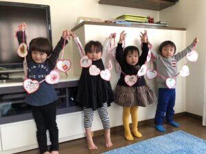 6月の親子クラスと年中・年長さんのクラフトはカエルのお面を作りました。